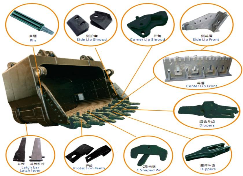 為公司WK系列挖掘機WK-10到WK-55,配套了履帶、挖斗鑄件(斗齒、護套、斗唇等)、托帶、斗栓、斗栓插座及開斗杠桿等耐磨鑄件