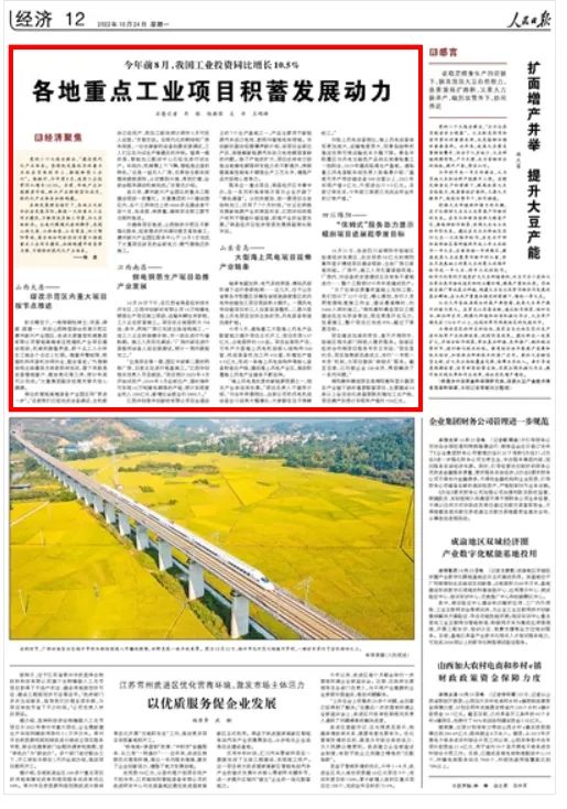 今日,人民日報在重要版面《各地重點工業(yè)項目積蓄發(fā)展動力》報道中,重點關(guān)注太重新園區(qū)設(shè)備安裝及建設(shè)進(jìn)展情況,給集團公司廣大干部職工和新園區(qū)的建設(shè)者們帶來了極大地鼓舞。