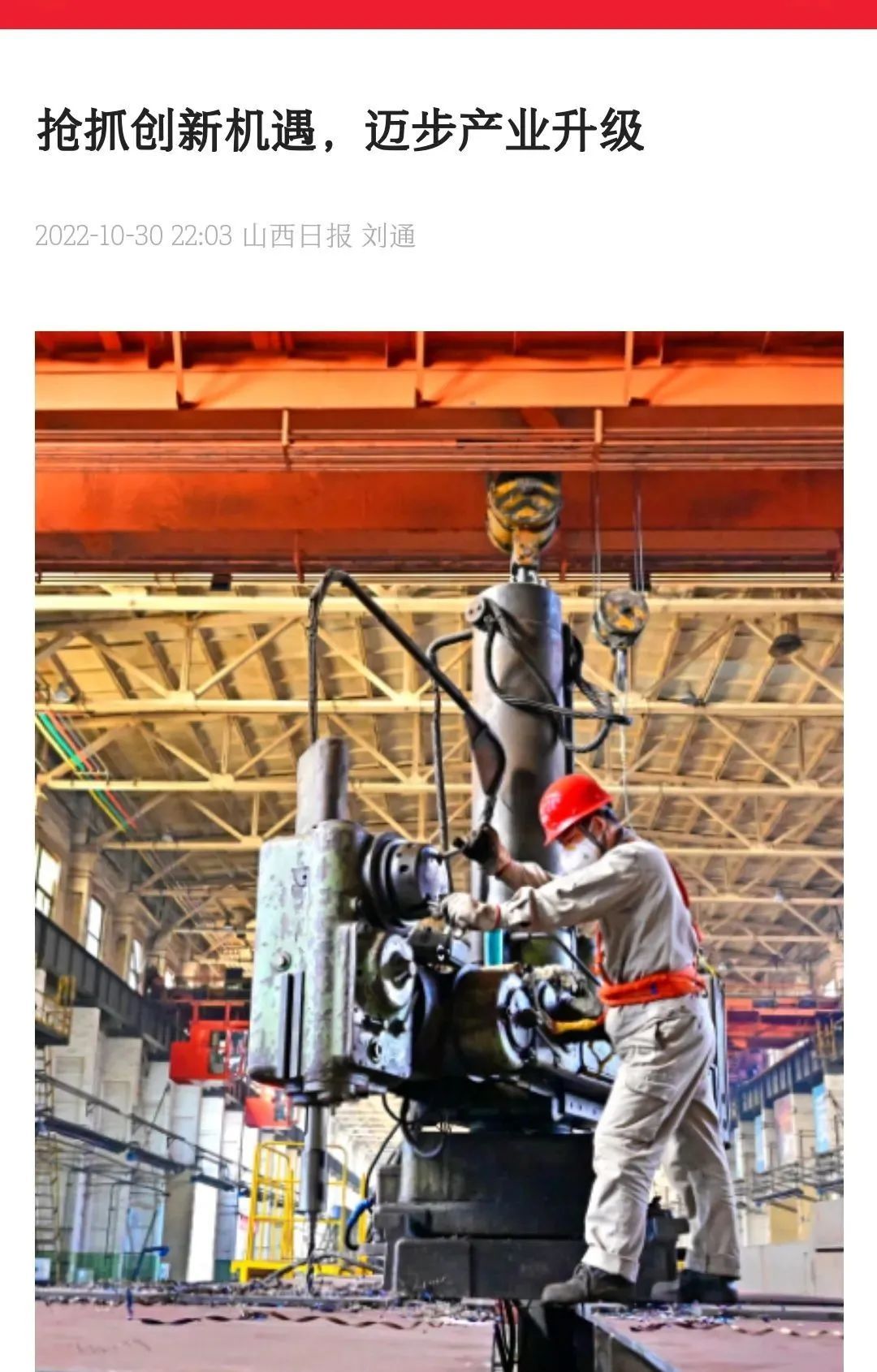 10月30日,山西日報以《搶抓創(chuàng)新機(jī)遇,邁步產(chǎn)業(yè)升級》為題,對太重集團(tuán)加大工藝技術(shù)創(chuàng)新取得的新突破進(jìn)行報道。全面深化改革以來,太重集團(tuán)堅持改革創(chuàng)新,聚焦智能設(shè)計、智能制造、智能產(chǎn)品、智能服務(wù),全力推動“制造”向“智造”轉(zhuǎn)型升級,持續(xù)提升制造業(yè)的技術(shù)含量,賦能公司高質(zhì)量高速度發(fā)展。