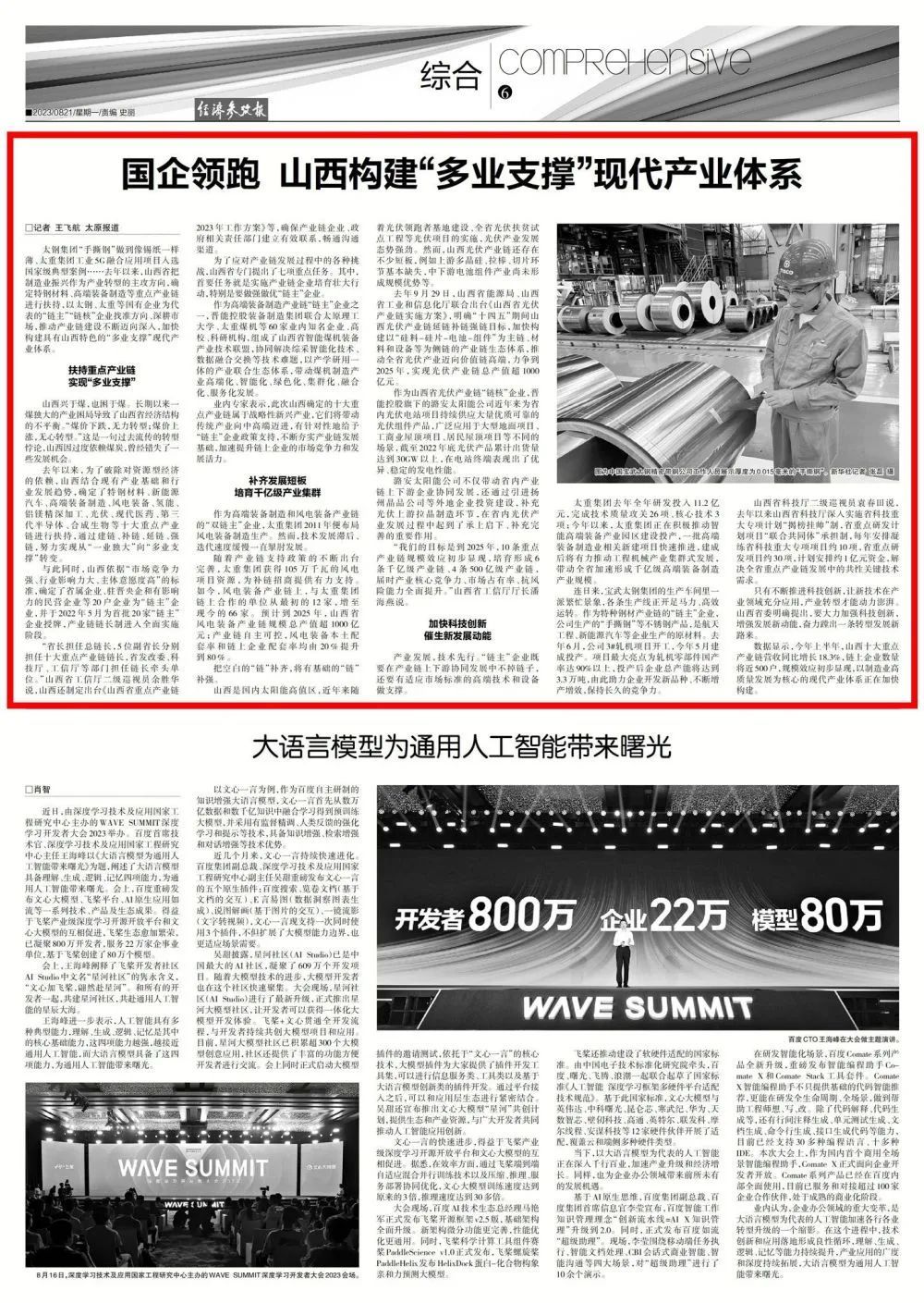 8月21日,新華社主管主辦的《經(jīng)濟(jì)參考報》刊發(fā)《國企領(lǐng)跑 山西構(gòu)建“多業(yè)支撐”現(xiàn)代產(chǎn)業(yè)體系》文章,深入報道太重轉(zhuǎn)型發(fā)展。太重集團(tuán)作為我省唯一的“雙鏈主”企業(yè),不斷提升公司在完善產(chǎn)業(yè)鏈、優(yōu)化供應(yīng)鏈、提升價值鏈中的引領(lǐng)作用,推動鏈上企業(yè)高質(zhì)量發(fā)展。同時,公司高度重視科技創(chuàng)新工作,以全國重點(diǎn)實驗室為依托,在突破關(guān)鍵核心技術(shù)、促進(jìn)產(chǎn)業(yè)轉(zhuǎn)型升級的最前沿取得顯著成績,為加快構(gòu)建具有山西特色的“多業(yè)支撐”現(xiàn)代產(chǎn)業(yè)體系貢獻(xiàn)太重力量。