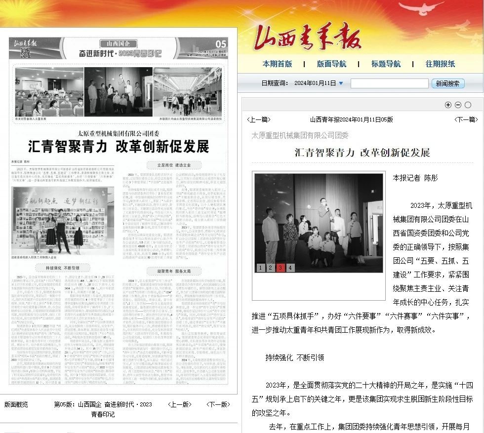 今日,山西青年報以《匯青智聚青力 改革創(chuàng)新促發(fā)展》為題,整版從“持續(xù)強化 不斷引領(lǐng)”“立足崗位 建功立業(yè)”“凝聚青年 服務(wù)大局”三個方面,對太重共青團2023年工作進行全面報道。
