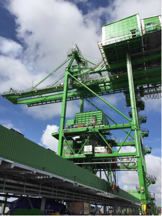 公司為芬蘭印尼起重機(jī)公司提供了6臺(tái)套岸邊集裝箱起重機(jī),設(shè)備整機(jī)發(fā)往印尼國(guó)家港務(wù)局碼頭。岸橋前伸距48米、軌距26米、吊鉤橫梁起重能力50噸、集裝箱吊具下起重能力40噸,該項(xiàng)目是我司首次整機(jī)、制造、調(diào)試及發(fā)運(yùn)的大型岸邊集裝箱起重機(jī),增加了印尼國(guó)家碼頭吞吐量,提升碼頭大型集裝箱裝卸的效率。