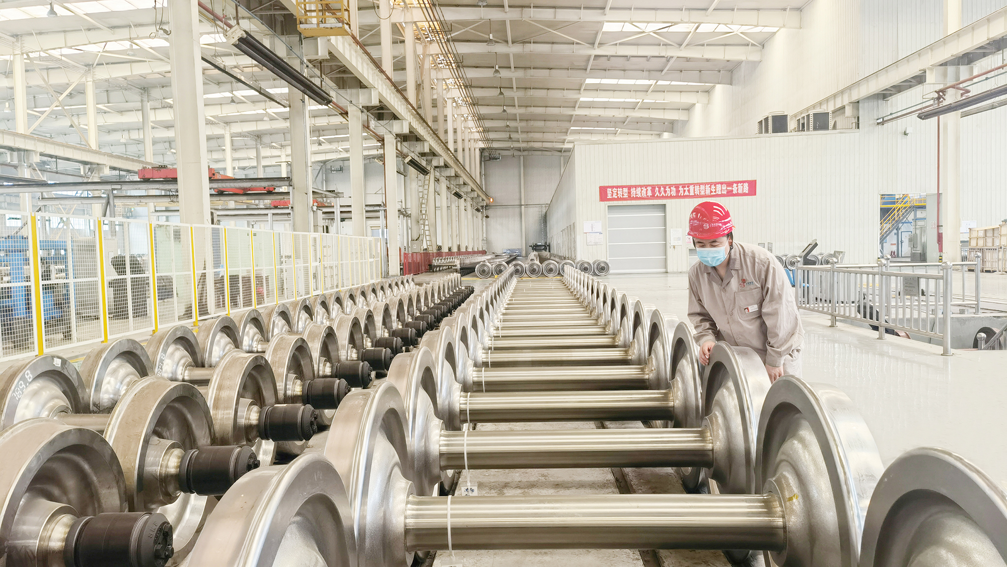 世界唯一的軌道交通用車輪、車軸、齒輪箱及輪對全譜系全系列全流程研發(fā)制造基地,52秒就能熱軋出產一片車輪,代表了世界最先進水平。